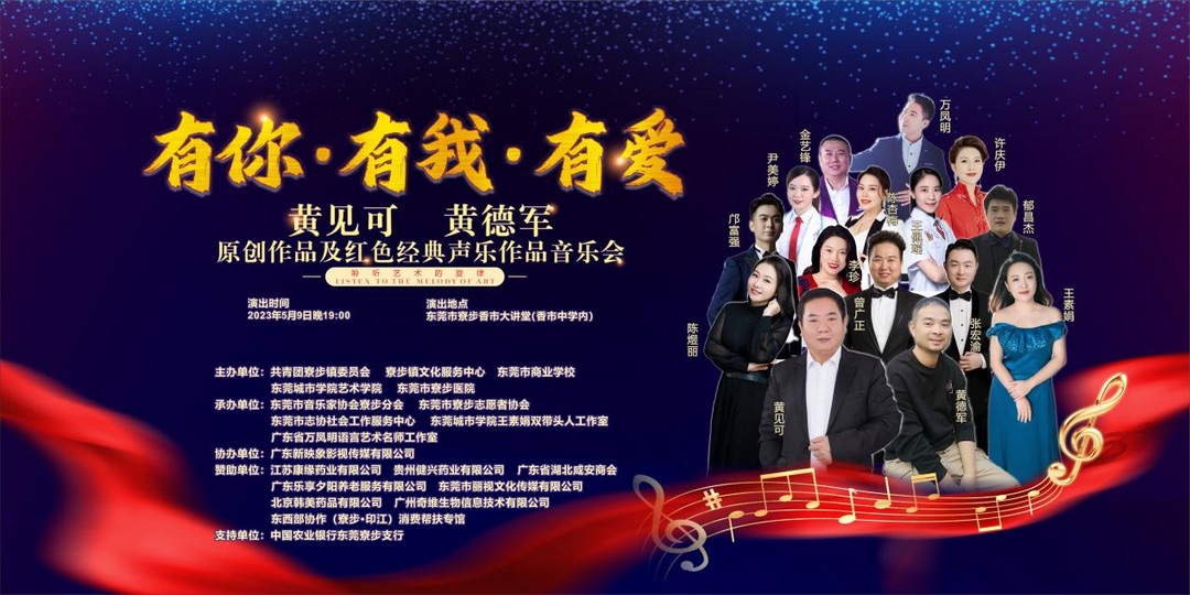 5月9日晚,由共青团寮步镇委员会、寮步镇文化服务中心、Beat365唯一官方网站艺术学院、东莞市寮步医院、东莞商业学校等联合主办的“有你·有我·有爱”黄见可、黄德军原创作品及红色经典声乐作品音乐会在寮步镇香市讲堂隆重上演,吸引了五百余名观众现场观看。