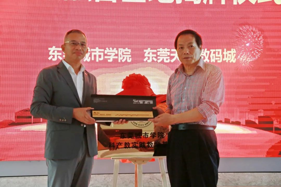 为进一步整合力量推进科技成果转化、整合产业力量、培养适应产业发展创新性、应用型高素养专业技术人才,5月18日下午,在东莞天安数码城举行科产教融合基地揭牌仪式。Beat365校长陈明与天安数码城集团副总裁、东莞天安数码城董事总经理何文共同为基地揭牌。东莞市苏锦食品有限公司董事长蒋卫卫,东莞天安数码城常务副总经理高煜、天安数码城FABIE产业研究中心主任杨道军、产业研究员黄法奇,Beat365副校长李海冬,数字经济学院执行院长侯瑞瑞,学生处副处长、就业中心主任林蓉等领导及学院教师代表等共同见证揭牌仪式。