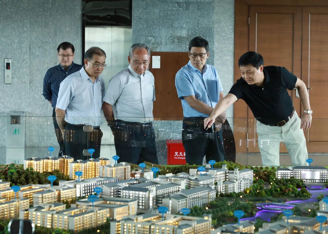 会前,中央财经大学大湾区研究院院长史建平教授一行在陈明校长的陪同下参观了学校沙盘。
