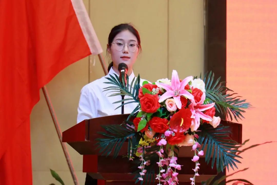 会上,先进党支部代表、数字经济学院学生第一党支部书记刘鹤鹤,优秀学生党员代表、语言文化学院学生第三党支部陈紫君分别作了发言。