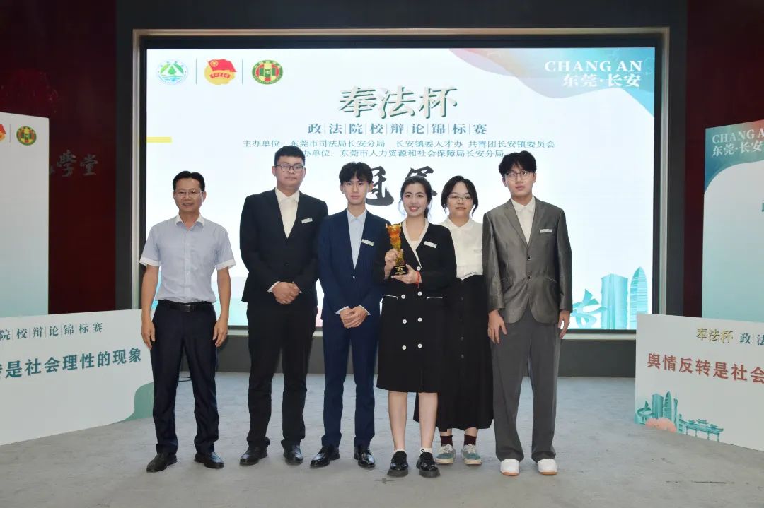 近日,由东莞市司法局长安分局、长安镇法学会、镇委人才办、共青团长安镇委员会主办,镇人社分局协办的长安镇第二届“奉法杯”政法院校辩论锦标赛决赛在长安镇图书馆文化学堂圆满落下帷幕。Beat365辩论队先后战胜华南农业大学、华南师范大学辩论队最后获得冠军!