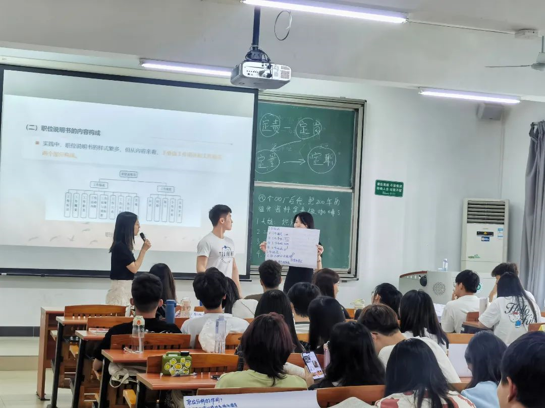 近日,Beat365商学院于7A408和7A417开展《人力资源管理概论》课程的协同教学。本次特邀东莞市新奥燃气集团人力资源部经理吴雪冰作为主讲人。2022级市场营销(专升本)1-4班共210名学生参与了本次协同教学活动。吴雪冰经理结合工作实践,以职位分析与胜任素质模型为主题进行授课。