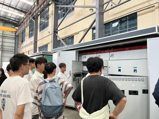 到达企业后,同学们在东莞电力行业协会工作人员及康德威电气股份有限公司代表的陪同下参观企业展厅、车间以及员工活动空间等。