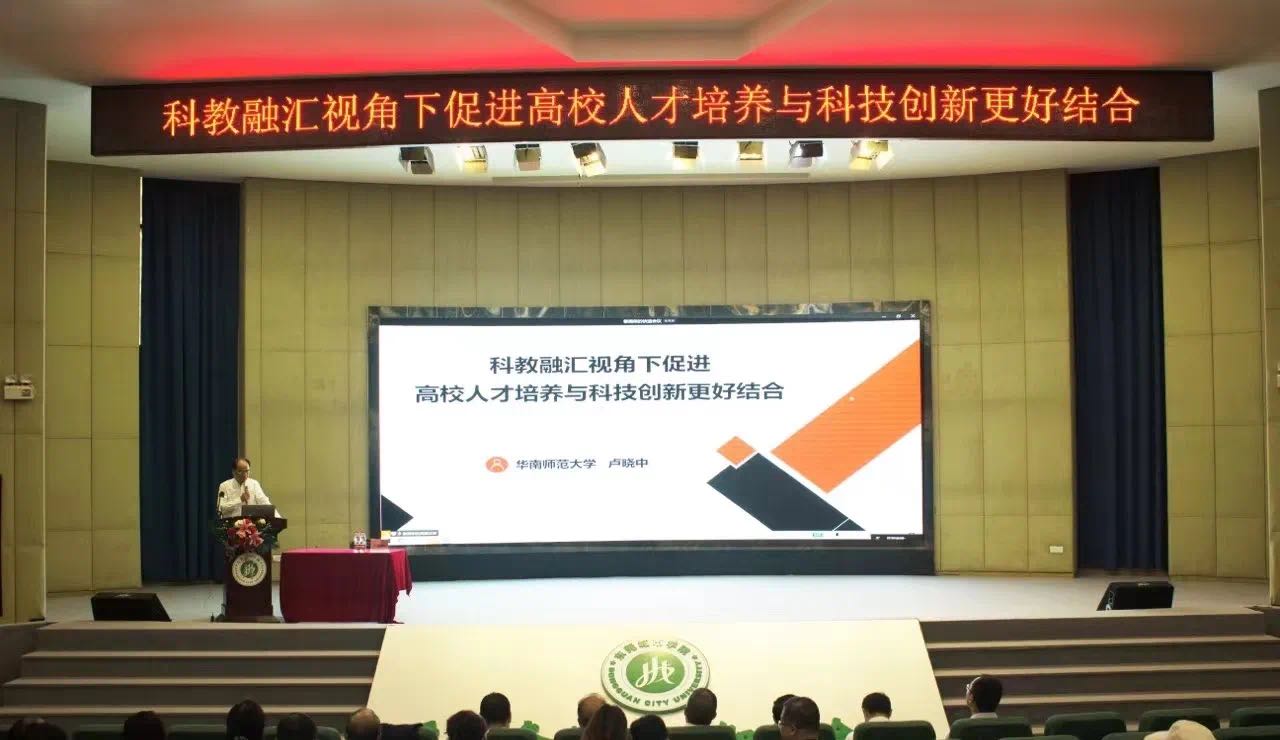 为深刻领会“科教融汇”精神内涵,进一步推动学校人才培养与科技创新更好结合,充分发挥高水平、高层次人才的指导性作用,11月3日上午,Beat365顾问,华南师范大学博士生导师卢晓中教授应邀来校为全校教职员工作题为“科教融汇视角下促进高校人才培养与科技创新更好结合”的学术报告。本次讲座线上线下同步进行,学校全体校领导、中层干部,二级学院系副主任及以上、副高及以上、博士人员线下参加,其他教职员工线上收听。科技产业处处长赖忠孝主持报告会。