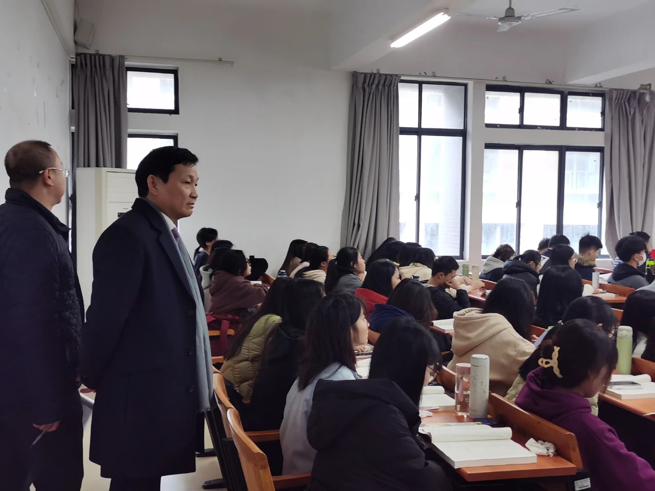 学校高度重视课堂教学工作,3月4日一早,校领导方伟华、周庆、陈葆华、李海冬、康贤刚带领教务部相关工作人员一起走进学校各教学区域,分组巡查开学第一天的教学情况。领导们深入教学一线,和全体师生一起上好新学期开学的第一堂课,重点关注课堂上教师的精神风貌、授课材料准备、课堂学习氛围以及教学软硬件设施条件等环节。