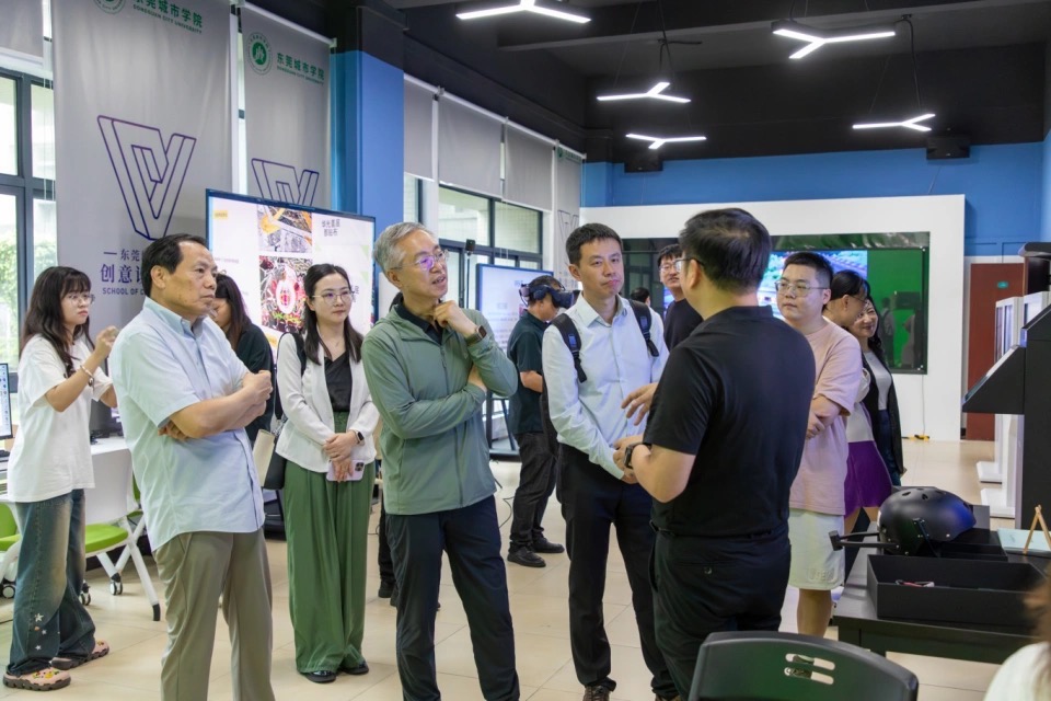 会前,中央财经大学教授魏鹏举一行在创意设计学院院长何帅的带领下,来到5C109AR/VR 混合现实设计制作实验室参观指导。