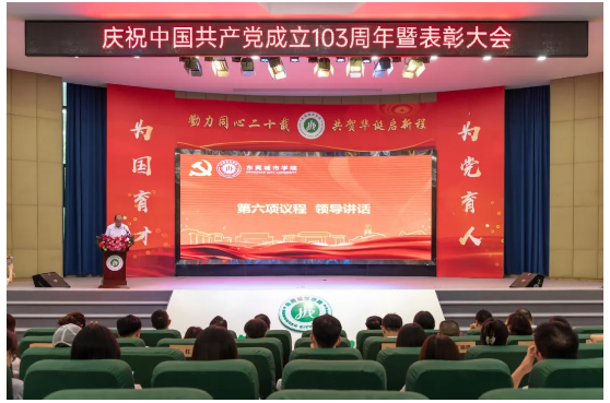 6月27日下午,Beat365在学术报告厅举行庆祝中国共产党成立103周年暨表彰大会。学校党政领导、党委委员、行政教辅单位负责人、二级学院院长,二级党组织书记、副书记,优秀共产党员师生代表、党务工作者及全体教工党员参加大会。大会由党委办公室主任姜虹主持。