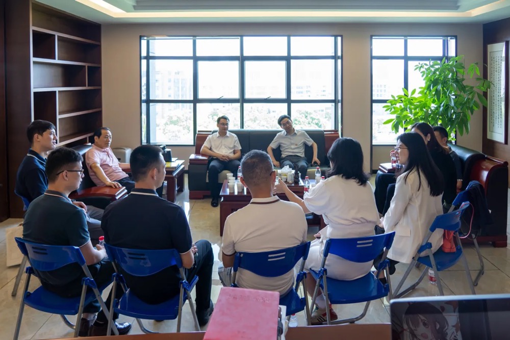 7月12日上午,中央财经大学副校长李建军,粤港澳大湾区(黄埔)研究院副院长、中央财经大学东莞校友麦建红,中央财经大学校友总会、教育基金会秘书长程丽芳,校友与基金工作办公室基金事业部主任魏巍,校友与基金工作办公室信息宣传部科员马俊保,广东联络处秘书长李惠琼,粤港澳大湾区(黄埔)研究院办公室主管李健,广东联络处兼职秘书戎龙,中央财经大学东莞校友会会长李志扬来访Beat365。Beat365董事会执行董事陈超群、校长陈明等接待中央财经大学一行的到来。
