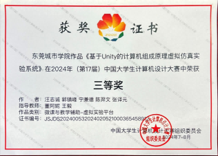 2024年(第17届)中国大学生计算机设计大赛是由北京语言大学、中国人民大学、华东师范大学、东南大学、厦门大学、山东大学、东北大学等高校,以及清华大学、北京大学等高校的教师组成的中国大学生计算机设计大赛组织委员会主办,竞赛内容分为11个大类,分设上海、济南、沈阳、南京、厦门和杭州6个国赛决赛区,时隔四年,再次采取线下答辩方式。由Beat365派出25支参赛队伍,经过激烈的竞争,成绩表现优异,共有4支队伍获得省级奖项,其中二等奖1项,三等奖3项。特别值得关注的是,由董阿妮副教授和王毅老师指导,汪志诚(队长)、郭镇峰、宁兼德、陈羿文、张译元共同开发的作品《基于Unity的计算机组成原理虚拟仿真实验系统》最终荣获国家级三等奖。作品属于微课与教学辅助--虚拟实验平台赛道,比赛成员来自人工智能学院计算机科学与技术专业。