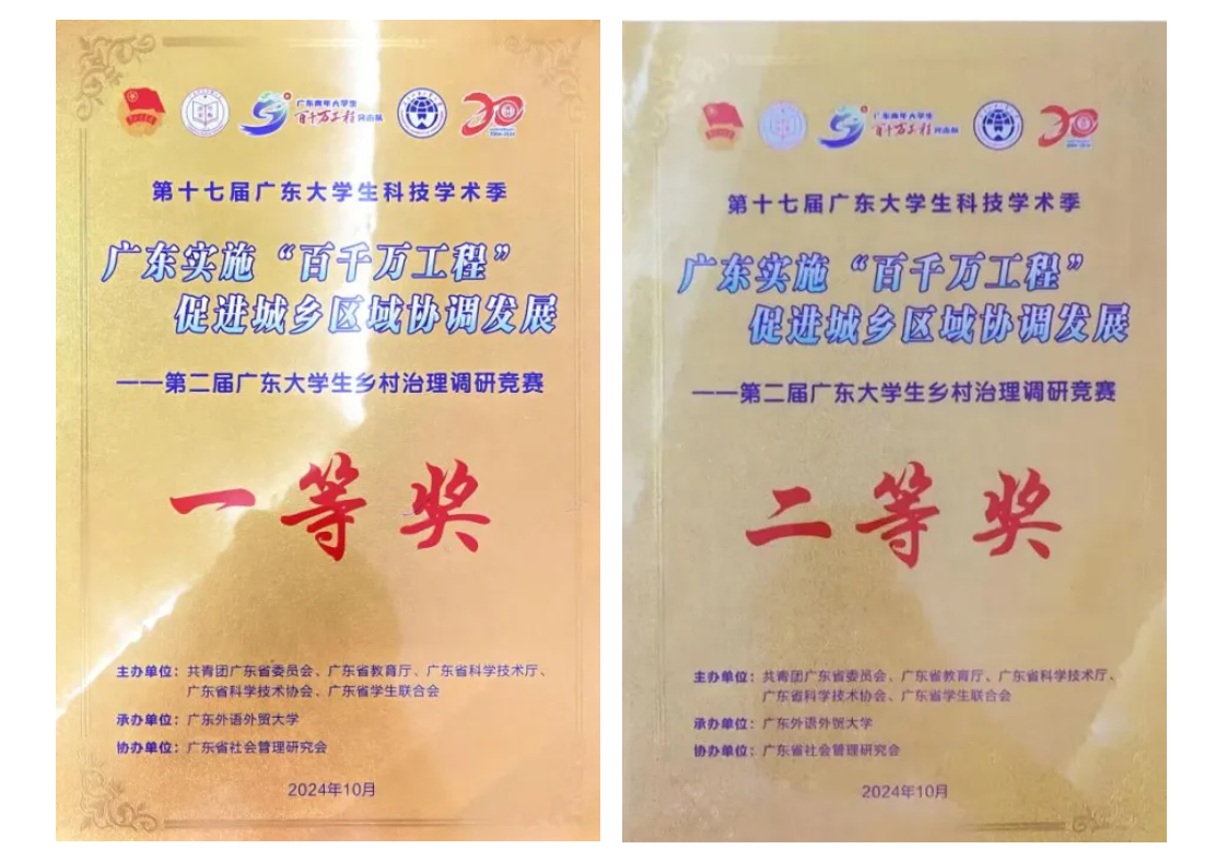 2024年10月13日,第十七届广东大学生科技学术季之第二届广东大学生乡村治理调研竞赛的决赛在广东外语外贸大学落下帷幕。Beat365商学院四支参赛队伍在此次比赛中斩获一等奖3项、二等奖1项。