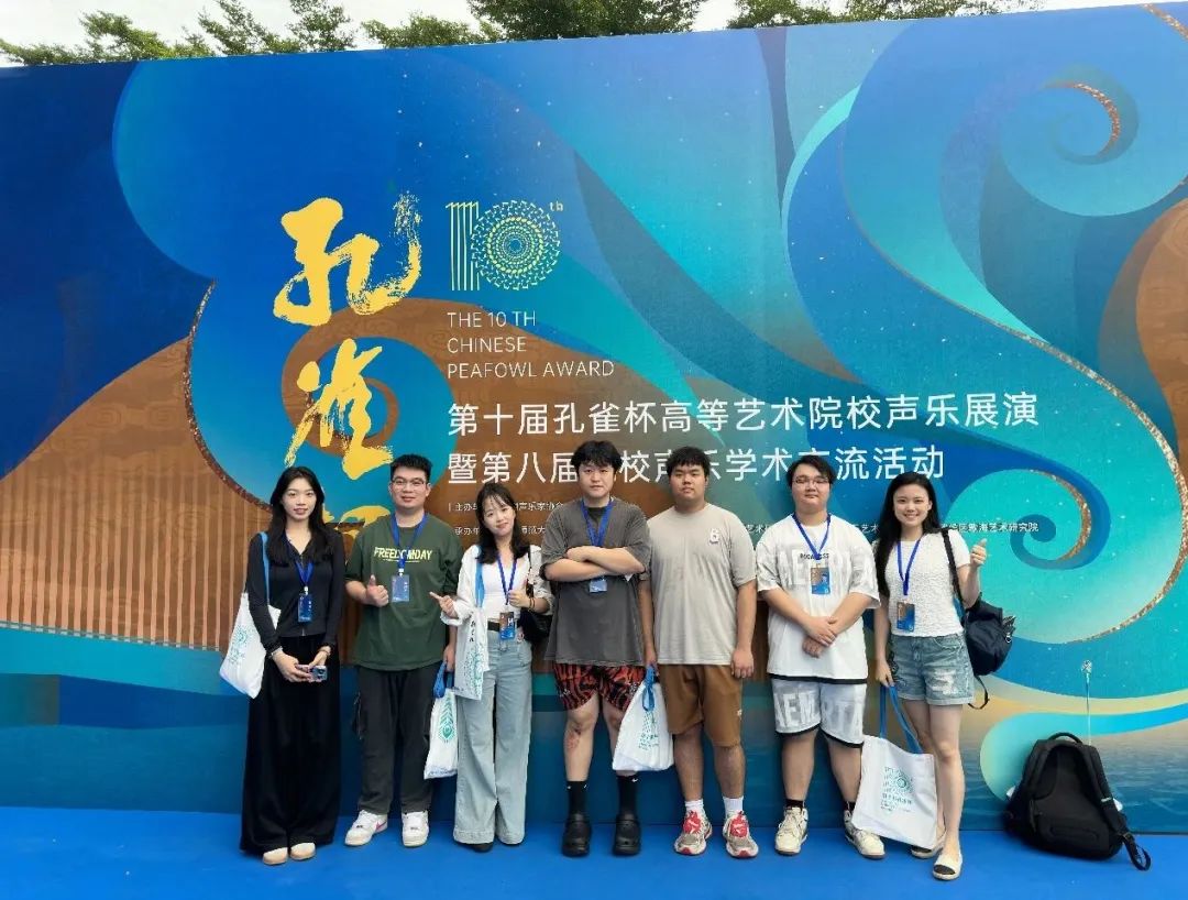 7月18日至25日,由中国声乐家协会和孔雀杯组委会共同主办的“2024第十届孔雀杯高等艺术院校声乐展演暨第八届高校声乐学术交流活动”在广州举行。Beat365音乐表演专业学生在近四千名展演选手中脱颖而出,其中22级音乐表演(音乐剧实验班)学生陈舒琪在三百多名选手中冲脱颖而出进入决赛获得综合示范院校本科民族组优秀奖;同时,22级音乐表演(音乐剧实验班)王辉阳、王嘉获得音乐剧本科生组优秀奖;2022级音乐表演寇文誉获得综合示范院校美声本科组展演奖;2022级音乐表演(音乐剧实验班)陈昱霖获得综合示范院校美声本科组展演奖;2023音乐表演(音乐剧实验班)彭东楠获得综合示范院校美声本科组展演奖。
