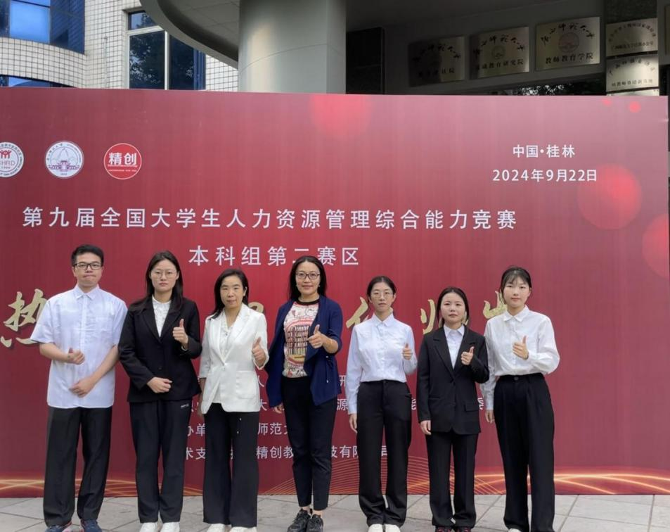 本次竞赛于今年6月启动,吸引了中山大学、华南师范大学、吉首大学等338所院校,1171支队伍,3513名学生参赛。经过校赛筛选,Beat3655支团队出战第一环节的线上比赛,晋级后的队伍于今年9月22日远赴广西师范大学参加第二环节的HR职业实战PK,最后总成绩喜人,三支队伍分别取得一等奖、二等奖和三等奖的好成绩。