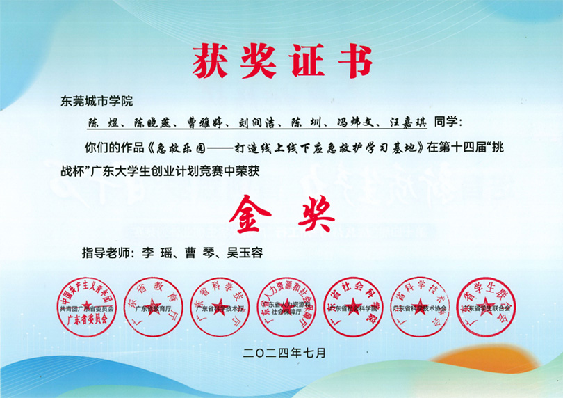 “急救方舟”项目自2024年3月以来,截止到目前,已荣获广东省“挑战杯”大学生创业计划竞赛金奖,广东省“益苗计划”省级示范项目,东莞市“益苗计划”志愿服务项目大赛金奖,全国首届新文科实践创新大赛城院分赛金奖等多项荣誉,并获得大学生创新创业训练计划国家级立项。这些荣誉是项目团队的不懈努力、全身心投入的收获。