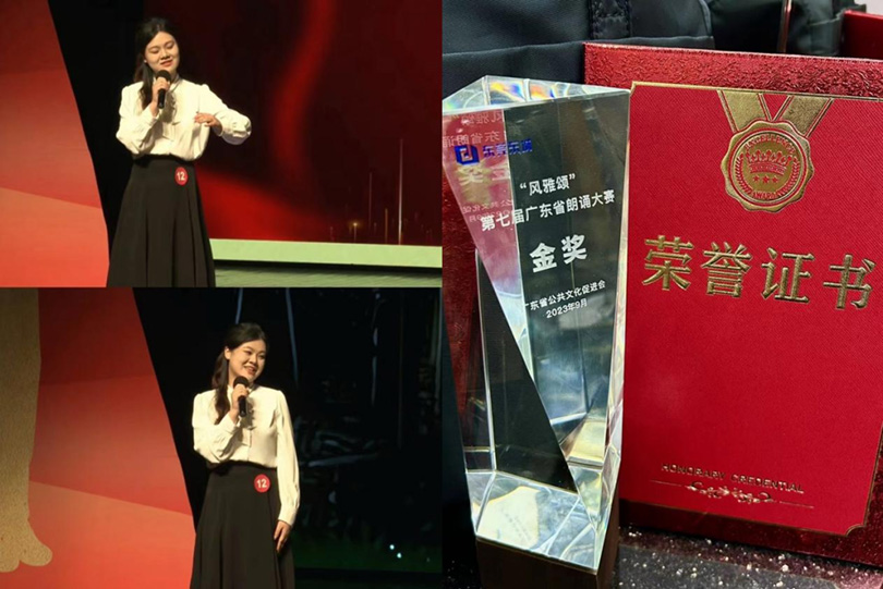在东莞赛区初赛的激烈角逐中,仅有的两个晋级名额备受瞩目。新传媒与艺术学院21级表演专业蒋青恒同学作为该赛区唯一的学生代表,置身于30余位强劲对手的重重包围,却毫无惧色。她凭借深厚扎实的表演功底、精妙出色的语言表达,以别具一格的演讲视角切入主题,用饱含真挚的情感进行演绎。其现场表现深深打动评委,成功突围。此次获奖也并非偶然,早在去年广东省第七届“风雅颂”朗诵大赛中,蒋青恒就凭借深厚的语言艺术造诣荣获金奖。今年转战演讲赛场,依然风采不减,持续向着冠军宝座发起强有力的冲击,在这场汇聚全省精英的演讲大赛中留下了属于自己的深刻印记,也为Beat365唯一官方网站及东莞赛区争得了荣耀金奖。