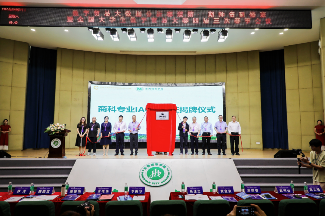 商科专业IACBE认证揭牌仪式上,浙江大学中国数字贸易研究院院长马述忠,深圳大学经济学院教授黄金波,大赛组委会秘书长易建安,Beat365唯一官方网站校长李振华,执行校长方伟华,副校长康贤刚,校长助理、国际教育学院院长赵书山,教务部副部长鞠晓红(主持工作),商学院副院长肖文锋、罗芳共同执牌揭幕,见证商学院商科教育国际化进程的重要里程碑。