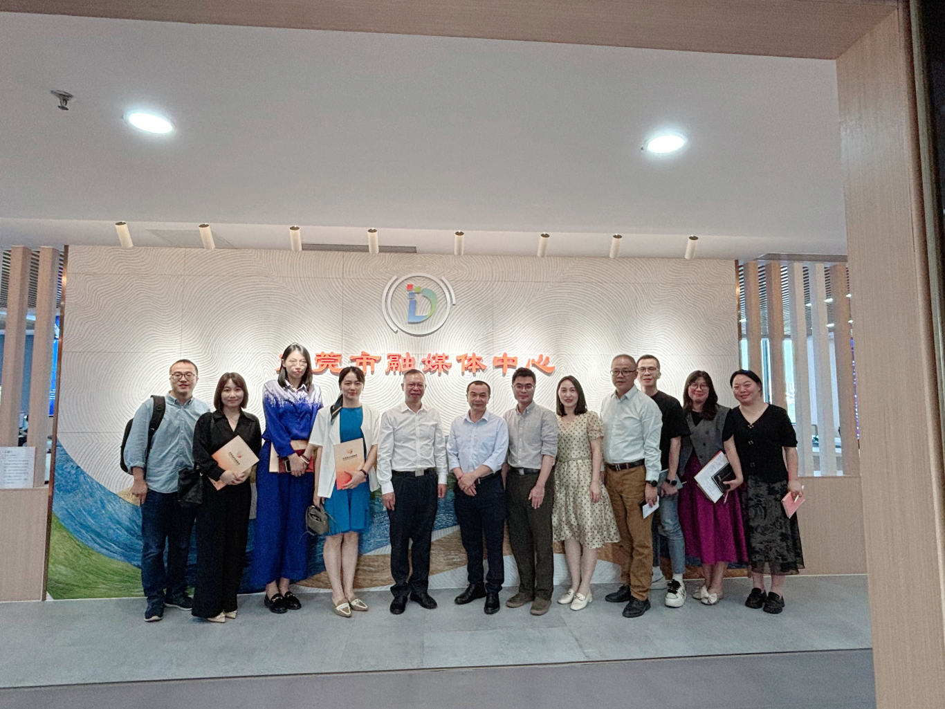 东莞日报社首先带领新传媒与艺术学院代表团参观了报社的文创馆、报史展览馆以及市融媒中心。通过参观报史展,代表团详细了解了东莞日报的发展历程、办报理念及其在区域媒体融合发展中的创新实践;融媒中心则展示了全媒体时代的新闻生产流程和先进技术应用。