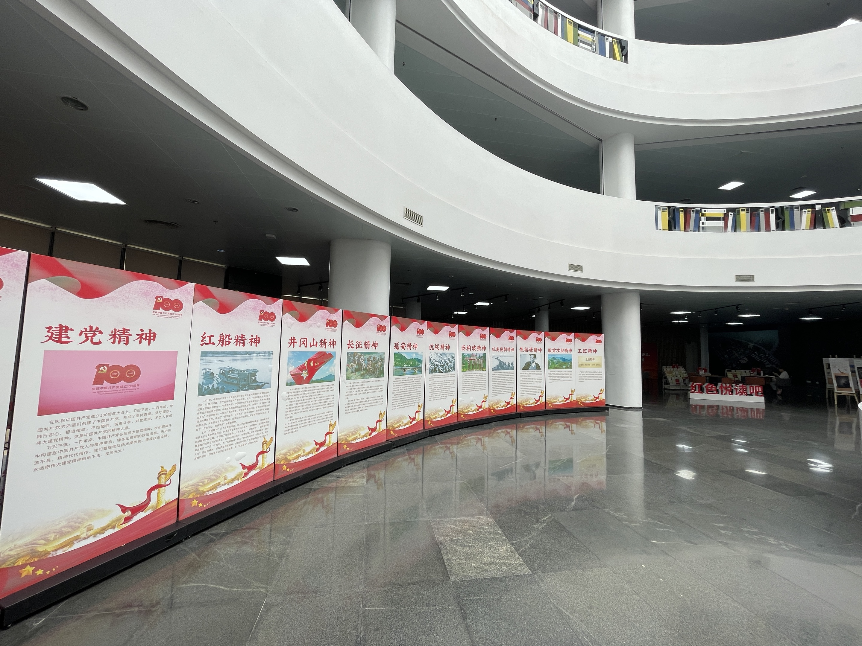 线下空间:建设“山体-湖区-微站”三维红色育人空间。学校毓秀山建设“长征”主题长廊,同时嵌入军事训练实践场景,打造沉浸式党史教育步道;学校映月湖新增一艘红色游船,设置红色艺术展演区,形成 “船载红歌” 特色品牌;在行政楼站、图书馆站、荔香园站、锦绣广场站、7A教学楼站、3A实验楼站打造6个“红色微站”,通过 “理论 + 案例 + 先锋” 立体展示,以党的最新理论、百年党史、中国共产党人精神谱系、红色文化、党建成果、特色党支部、先锋模范等为宣传内容,构建 “移步换景皆课堂” 的育人场域。