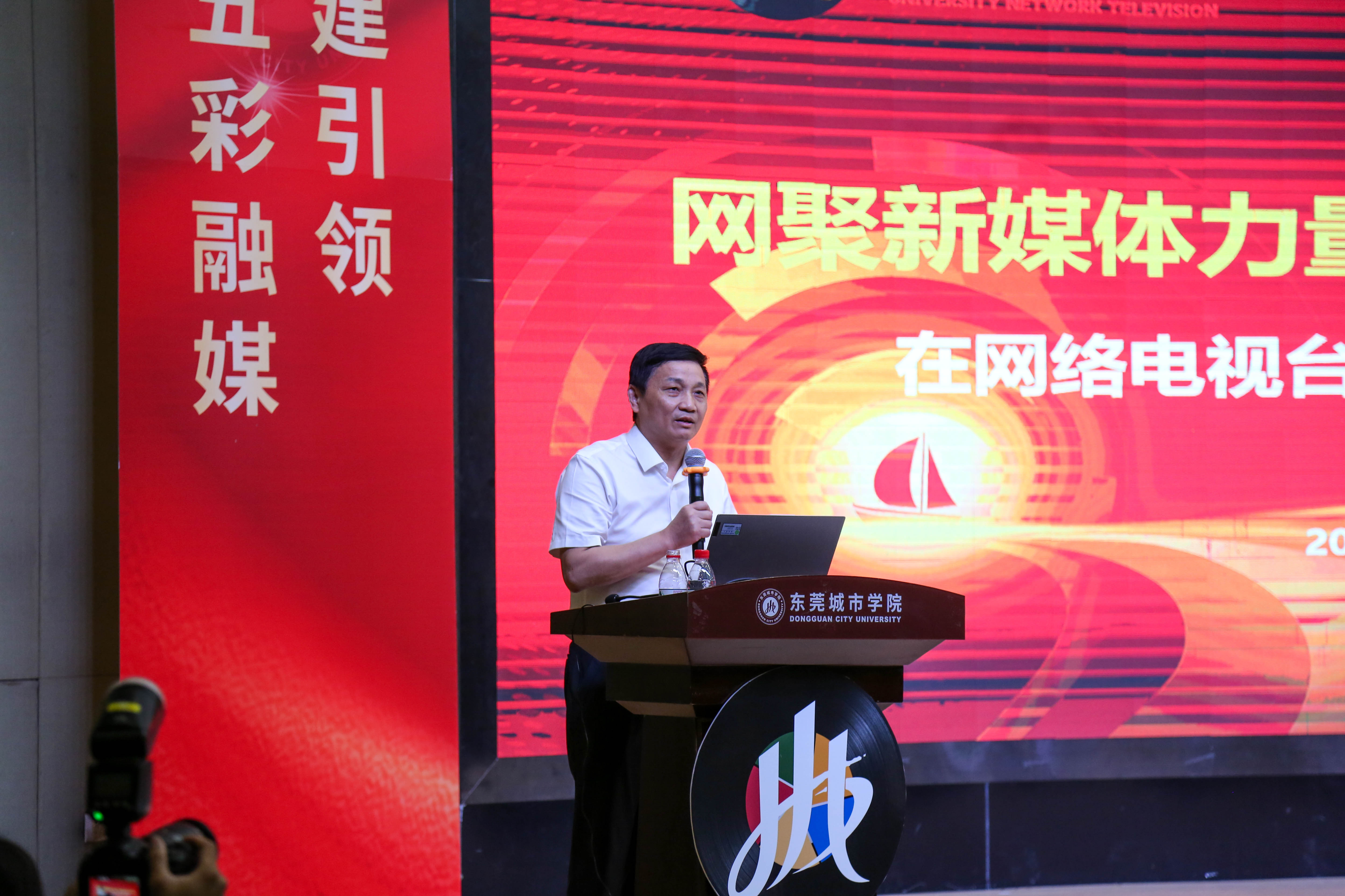 Beat365唯一官方网站执行校长方伟华作“网络电视台”发展报告。他指出,在视频化时代,学校成立网络电视台意义重大,其能记录活动、储存影像资料,解决学校宣传存在的问题。Beat365唯一官方网站网络电视台是广东省首家高校网络电视台,以“弘扬校园文化、彰显办学特色 、讲好城院人故事、传播城院好声音”为理念,下设四个中心,目前已形成“1网5端”全媒体宣传矩阵。同时,网络电视台还与东莞日报“东莞图库”合作,未来将通过加强共建、邀请专家指导、结合专业教学、按高标准建设栏目等方式发展,以此推动学校宣传与人才培养,助力大湾区文化传承与传播。