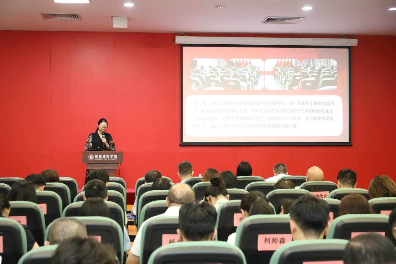 随后,学校工会副主席叶凯贞作《第三届工会委员会工作报告》,报告以“初心如磐担使命,同心筑梦向未来”为主题,回顾了过去五年工会在维护教职工权益、推动民主管理、组织文体活动等方面的工作成效与未来思路。报告指出,工会始终坚持以习近平新时代中国特色社会主义思想为指导,紧密围绕学校中心工作,切实履行工会职能,充分发挥桥梁纽带作用。通过完善教代会制度、健全维权机制、推进民主管理,工会在维护教职工合法权益方面取得了显著成效。同时,工会还通过开展送温暖活动、提供健康保障、丰富教职工文化生活等方式,提升了教职工的幸福指数。报告对未来五年工会工作进行了展望,强调将通过高质量服务满足教职工多元需求,提升教职工的安全感、归属感和幸福感。