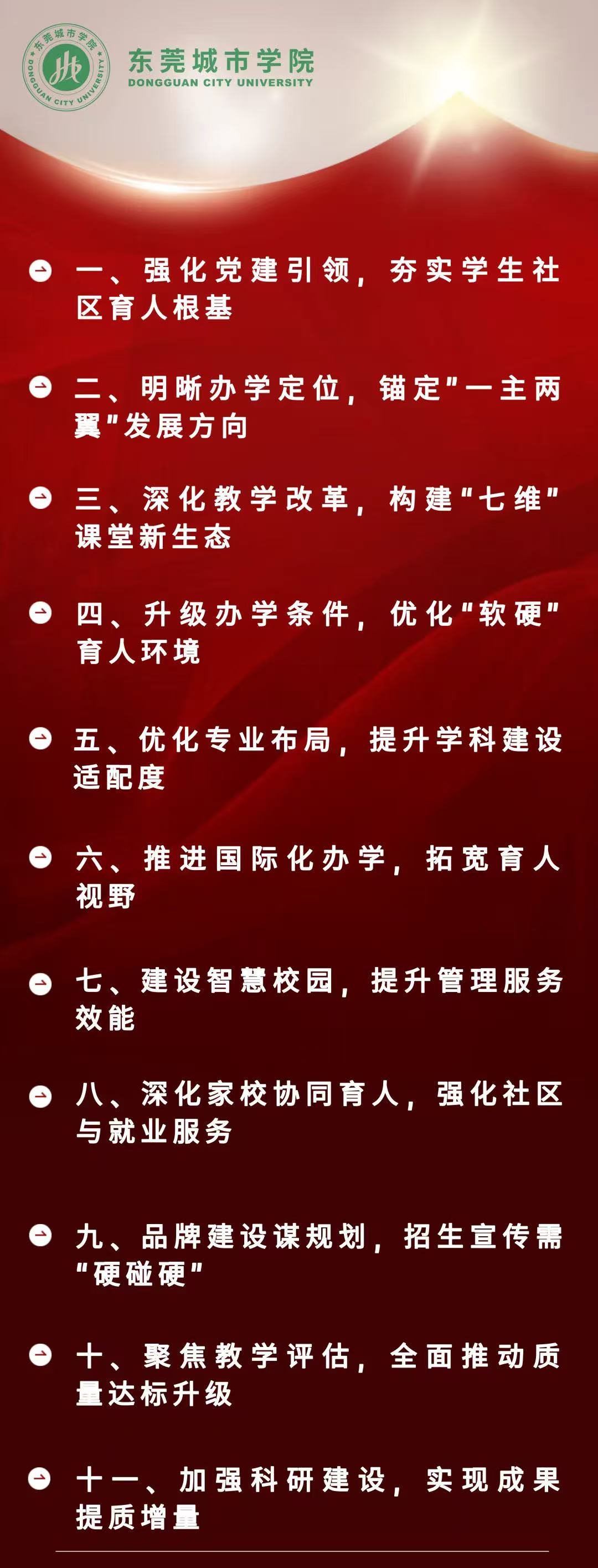 方伟华执行校长结合学校发展实际,在总结回顾近一年来学校工作的同时,围绕“如何将老师的教授学习与学生的自主学习相结合,构建学习型大学”为主题,与全体教职工分享了育人模式革新与教育质量提升的几点思考,集中体现在以下十一方面: