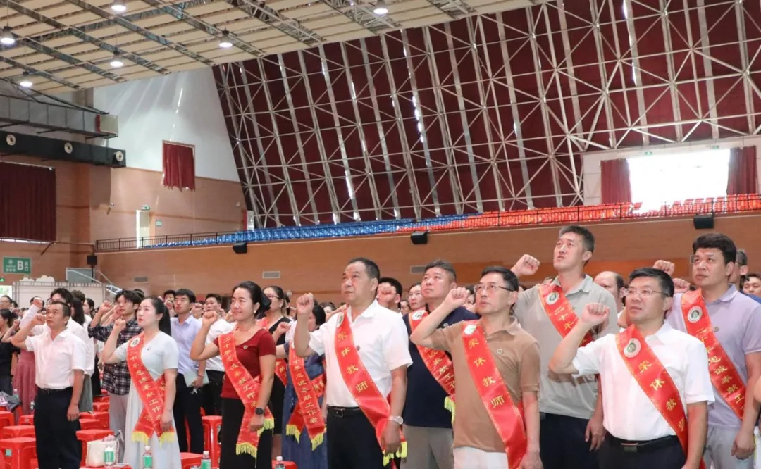 在党委副书记、副校长康贤刚的领誓下,全体教职工进行了庄严宣誓,承诺将忠诚于人民的教育事业,恪守教师职业道德,履行教师神圣职责。