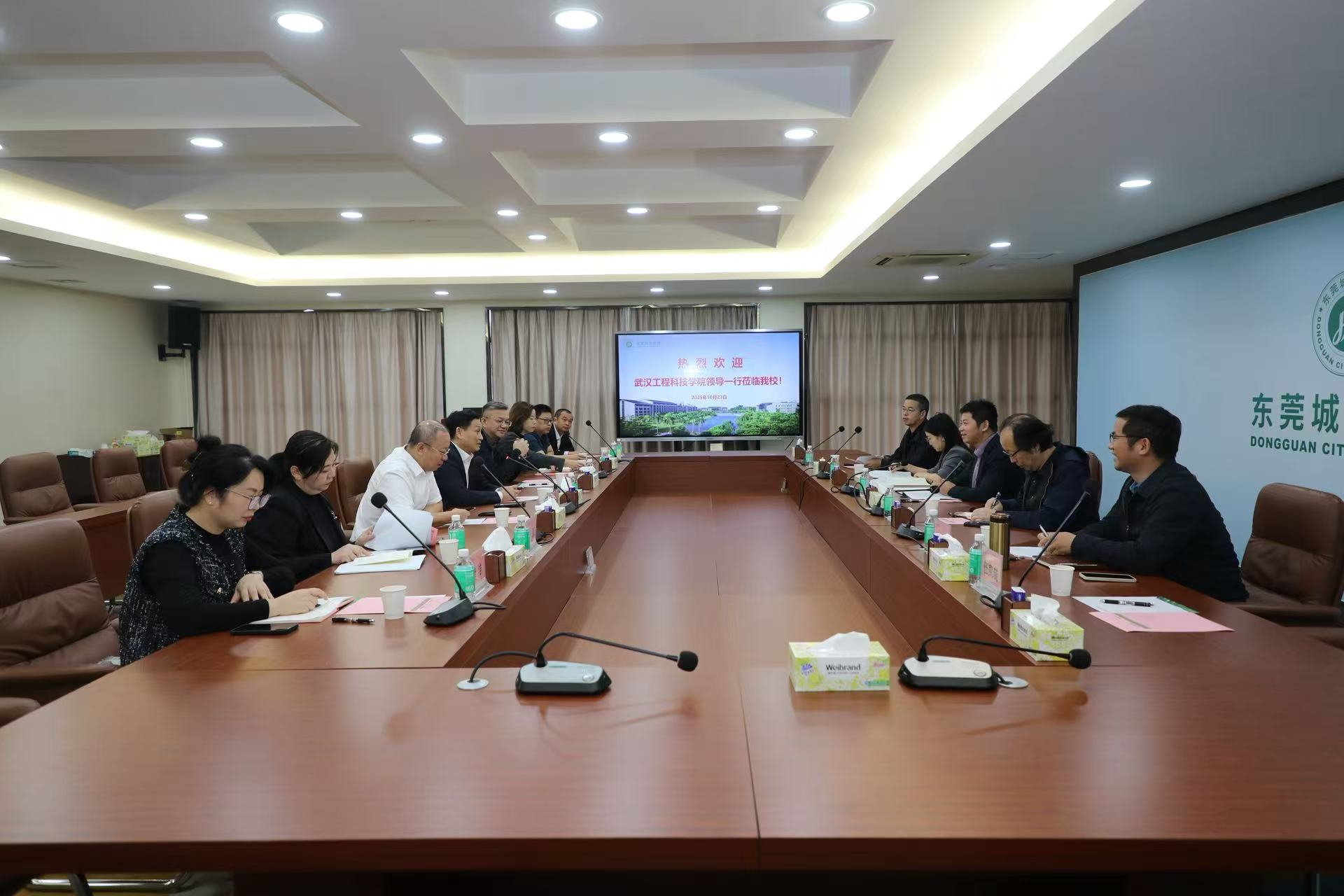 武汉工程科技学院副董事长、党委副书记、常务副校长王加青发言,他首先对Beat365的热情接待与经验分享表示感谢,并结合自身办学实践,就武汉工程科技学院相关领域与创新方向发展进行了介绍。他希望通过此次访问,能够加深两校交流,在师资队伍建设、学科建设、产教融合等方面互相交流学习,为进一步校校合作打下良好基础。