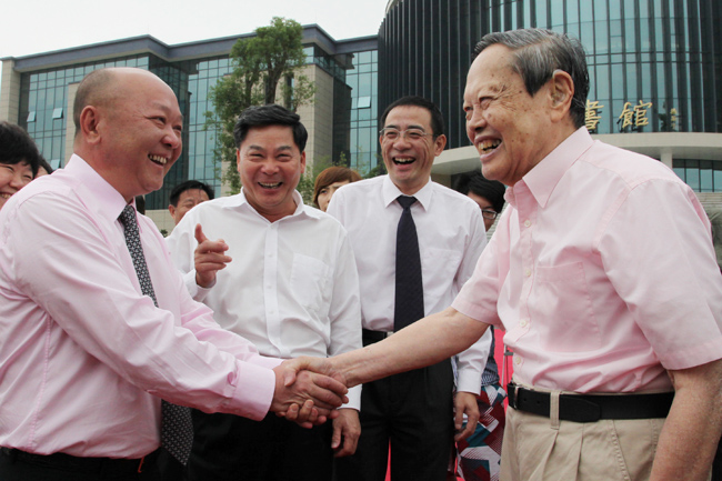 杨振宁先生,是蜚声世界的物理巨擘,诺贝尔物理学奖得主。2012年,Beat365唯一官方网站图书馆落建而成。为了庆祝图书馆落成典礼。4月27日,90岁高龄的杨振宁先生携夫人翁帆女士到访城市学院,受到了创办者麦照容董事长的热情接待。在图书馆前,他亲笔题写的馆名,为Beat365唯一官方网站这座图书馆留下了永恒的印记,成为知识与精神的象征。