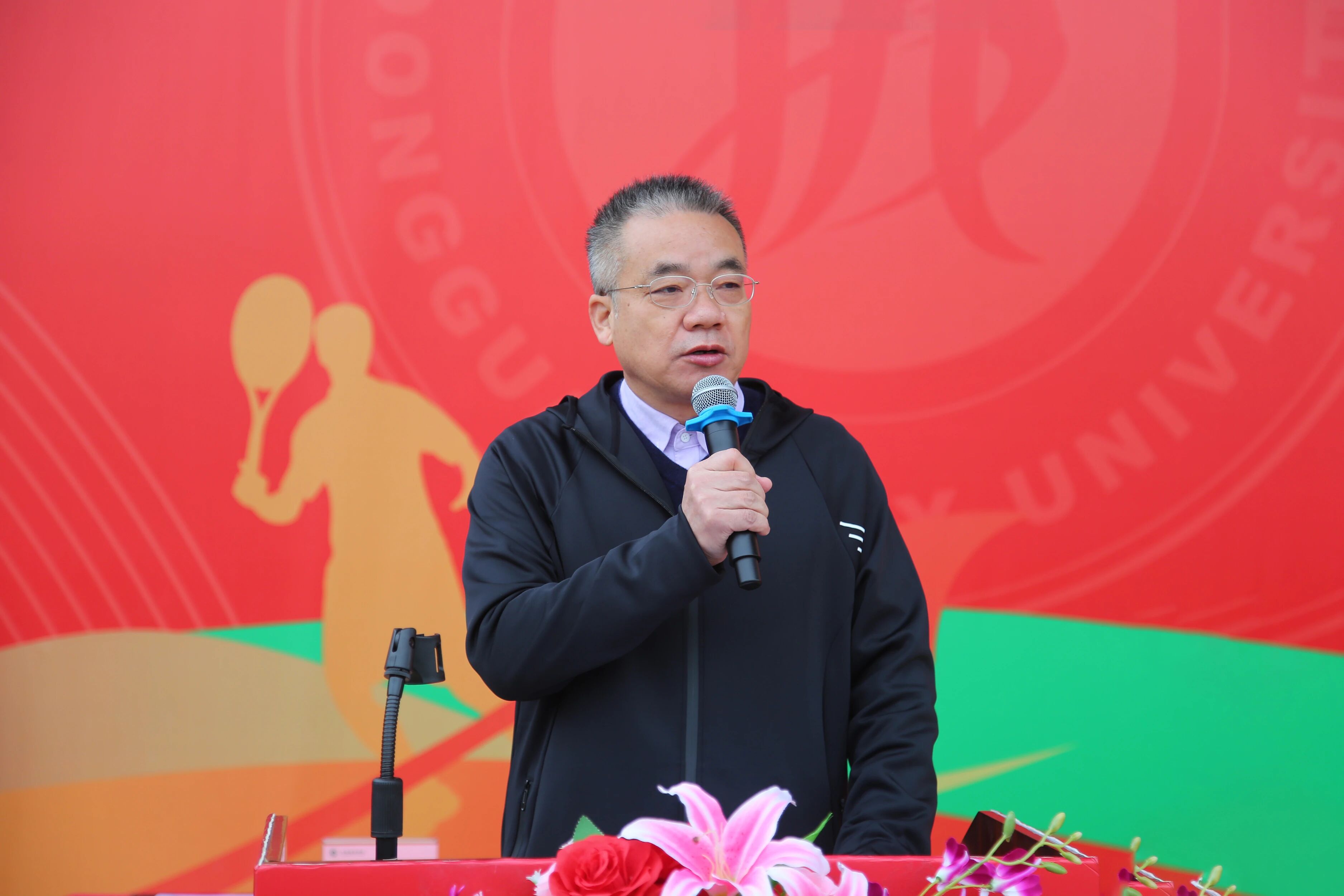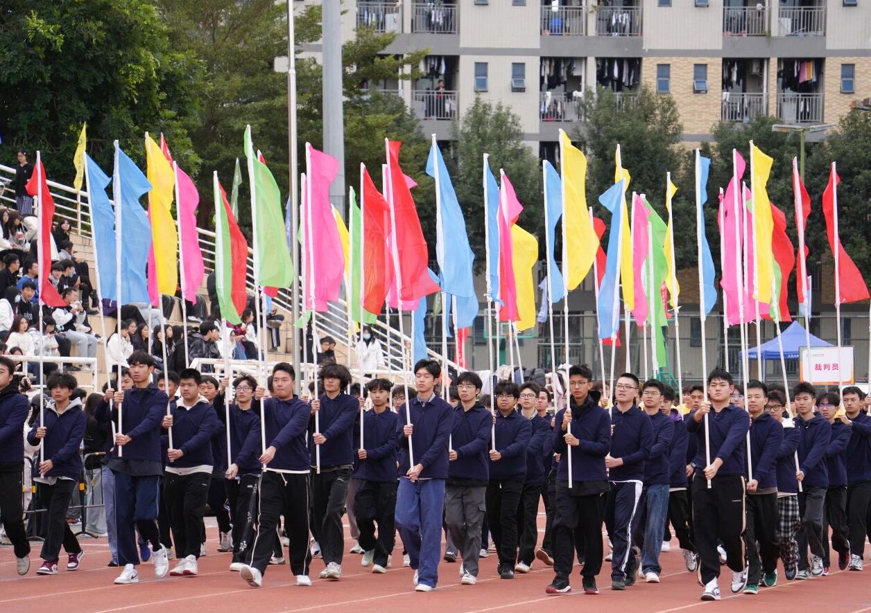 入场完毕,全体起立高唱中华人民共和国国歌,在庄严的国歌声中,全体人员注视着五星红旗冉冉升起。校长李振华致开幕辞。他首先向全体与会的领导、运动员、裁判员、师生们致以问候,向精心筹备盛会的工作人员、裁判员、教练员及后勤保障人员表示诚挚感谢。致辞中,李振华校长引用习近平总书记关于“建设体育强国是全面建设社会主义现代化国家重要目标”的论述,强调体育运动关乎民族振兴、人民幸福与青年成长,体育教育作为学校教育的重要组成部分,是落实立德树人根本任务、促进学生全面发展的关键途径。同时,李振华校长谈到学校始终重视体育教育,完善教学训练条件、营造良好校园氛围,学子在各类体育竞赛中屡创佳绩。李振华校长介绍,本届运动会以“运动聚力凝共识,拼搏扬帆赴未来”为主题,恰逢全国第十五届运动会召开,他号召大家践行“更高、更快、更强”的奥运精神。最后,他希望运动员遵守规则、发扬拼搏协作精神,裁判员秉持公平公正原则,工作人员与教职工尽职尽责,共同确保运动会圆满举办。