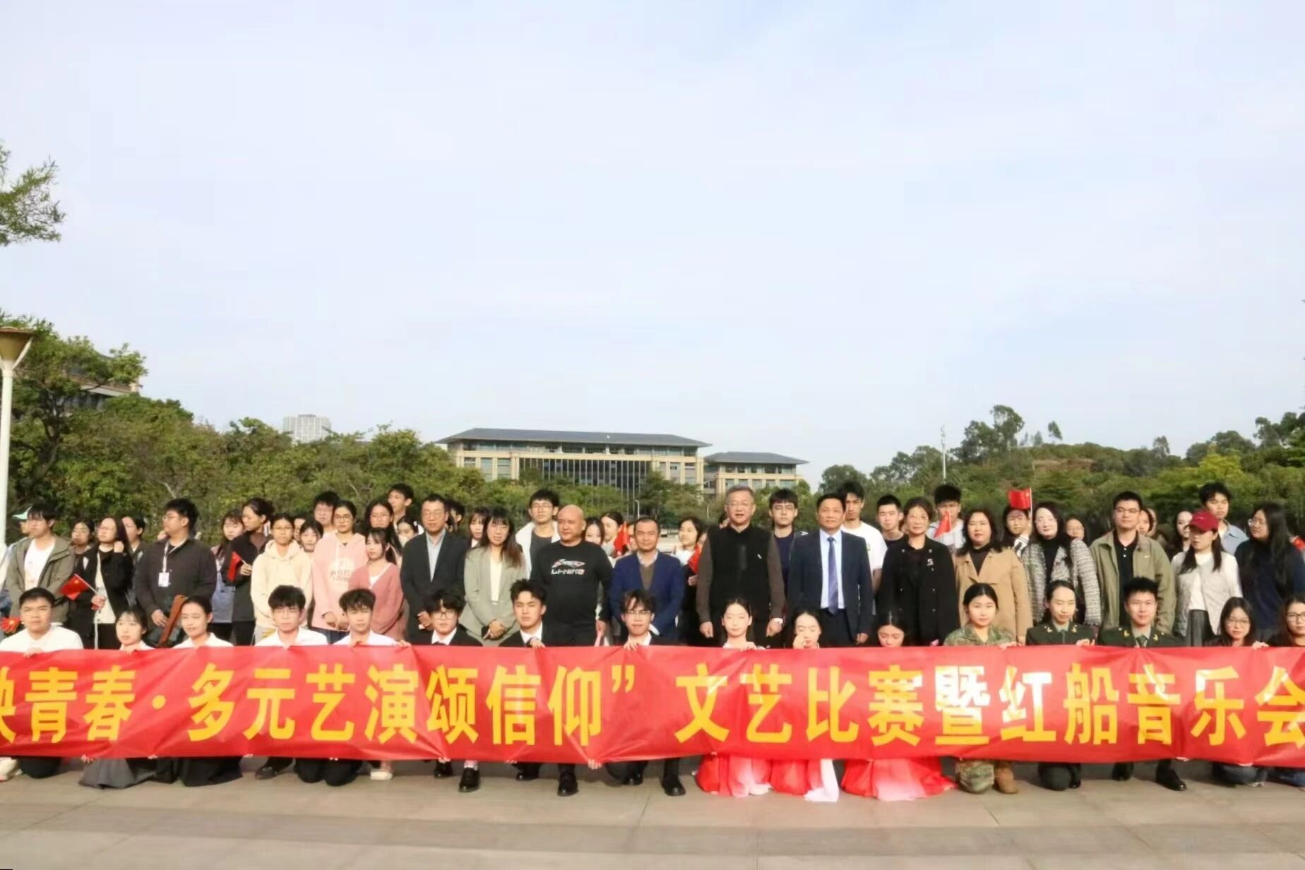 本次文艺汇演的成功举办,是学校构建“三全育人”工作格局的重要成果,也是法学院与商学院党组织协同推进红色文化育人的生动实践。在学校党委的坚强领导和各部门的大力支持下,两院团委精心组织、密切配合,确保活动政治方向正确、艺术表现精彩、育人成效显著。同学们在参与中深化了对党的认识,在表演中锤炼了理想信念,在协作中增强了集体凝聚力,充分展现了城院学子奋发向上的精 神风貌。