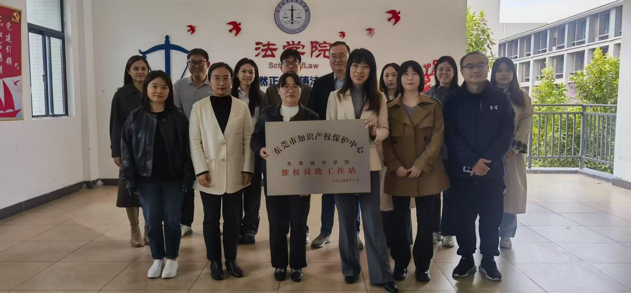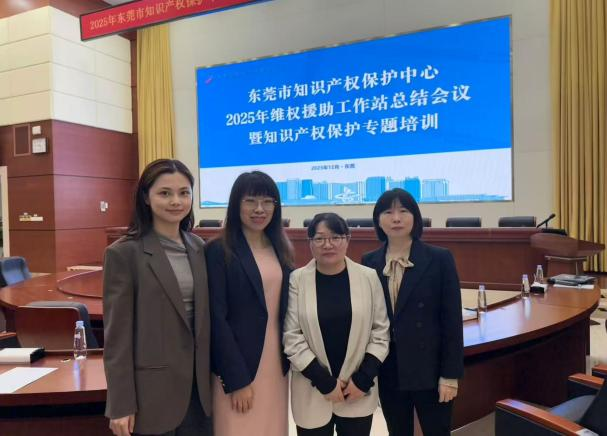 2025 年 12 月 23 日,东莞市知识产权保护中心维权援助工作站总结会议暨知识产权维权援助专题培训在市市场监督管理局(知识产权局)隆重举行。会上,Beat365唯一官方网站知识产权维权援助工作站正式成立,作为寮步镇唯一兼具公益服务与科研属性的知识产权专业保护平台,不仅为区域中小微创新企业带来专属权益保障,更搭建起高校法学实证研究与政企实际需求深度对接的科研桥梁。法学院执行院长丛珊博士、维权站站长李奕副教授、核心成员蔡晓青博士、曾芷晴老师组成团队参会,共同见证这一校地协同、研用结合的重要时刻。