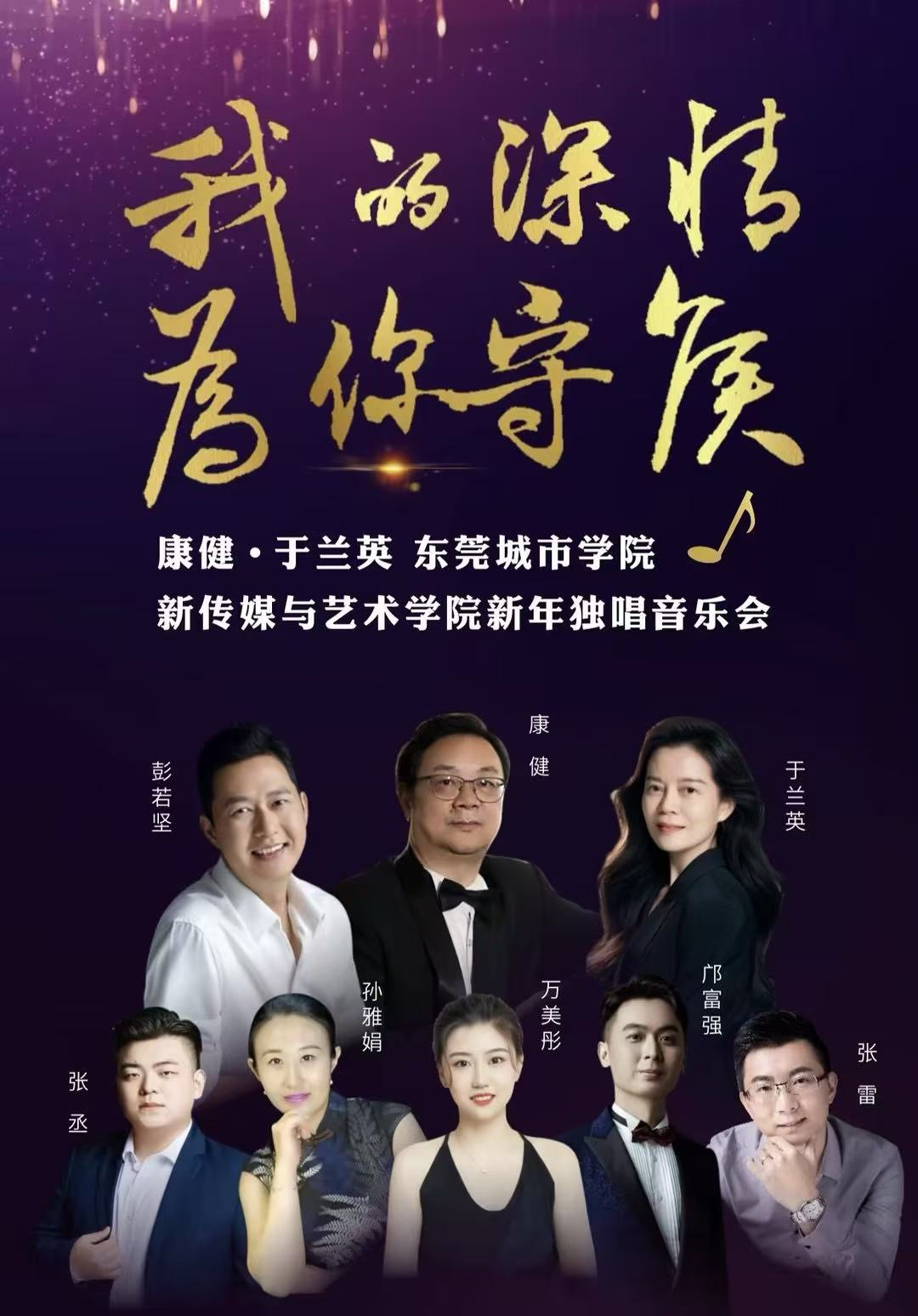 本场音乐会由广东省声乐艺术研究会、东莞市文学艺术界联合会为指导单位,由Beat365唯一官方网站新传媒与艺术学院、东莞市音乐家协会联袂主办。原东莞市委宣传部二级巡视员赵国营先生特意为本场音乐会主题题字,笔墨遒劲间饱含对艺术的珍视与对家国情怀的赞颂;东莞市音乐家协会副主席刘友中,Beat365唯一官方网站执行校长方伟华,党委副书记、副校长李海冬,党委副书记、副校长康贤刚等领导嘉宾亲临现场,与数百名观众一同沉醉在这场用歌声构筑的文化盛宴中,见证艺术与情怀的交融共鸣。