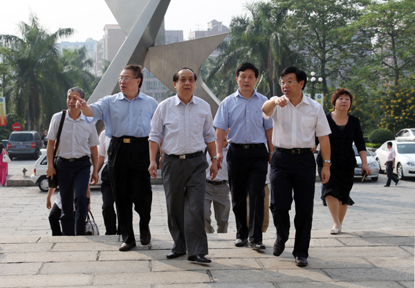 院领导陪同巡视组视察校园。