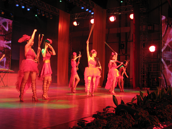 晚会民族与通俗辉映,古典和现代并存,抒发了我院师生成功的喜悦,表达了对新年的美好憧憬。由艺术系合唱团表演的《掀起你的盖头来》拉开了晚会的序幕。随后,几位老教授走上舞台,与他们同唱一曲《年轻的朋友来相会》,歌声跨越时空,跨越年龄,抒发了城院师生励精图治、追求卓越的豪情。器乐协奏、女声独唱、经典歌曲联唱接踵而来。颜乐、姜晓琳老师分别以大提琴和钢琴协奏的探戈名曲,让人置身于高雅欢快的气氛之中。经典歌曲联唱,又让观众追忆美好的岁月。被主持人笑称为“青蛙乐队”的艺术系四位老师上台了,他们表演的四重唱《一起走过的日子》、《哎呀妈妈》,意境独特,配合默契,极富感染力,展示了深厚的艺术功底。快板《情满城院》以轻快的节奏,曼妙的舞姿,欢快的歌声展现了城院和谐校园之风貌,道出了我院与鸿发集团合作办学的美好愿景,掀起了晚会的高潮。随后,充满乡村色彩的《山寨素描》,美好爱情守望《窗外》等一一呈现。晚会上,由2010广州亚运会体育展示现场表演指定团队:岭南风新民歌组合带来的女声表演唱《踏歌起舞》、《鸿雁》及弦舞时尚乐队的器乐表演《狂欢》、《但愿人长久》等节目,歌声穿云裂石,演奏新潮时尚,带给观众别样的视听感受。晚会一共表演了14个节目,在《二十年后再相会》的大合唱中落下帷幕。