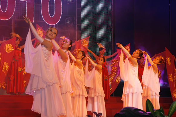 管弦奏华彩,欢歌迎新年。12月28日晚,我院隆重举行2010年新年文艺晚会。市人大副主任冯同恩,广东鸿发集团总裁、东莞理工学院城市学院第二届董事会董事长麦照容、东莞理工学院党委副书记王江水、黄碧莲,东莞理工学院副校长、城市学院院长安少华与我院1000多名师生共同观看了演出。