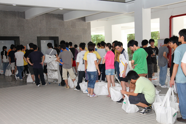 5月22、23日,400名学生志愿者与图书信息中心的老师共同努力,将图书馆的大部分书籍搬运到了新馆。尽管时有大雨,但由于准备充分、组织周密,整个搬迁工作始终有条不紊,顺利完成任务。至此,图书馆搬迁工作的关键部份已经完成。
