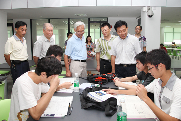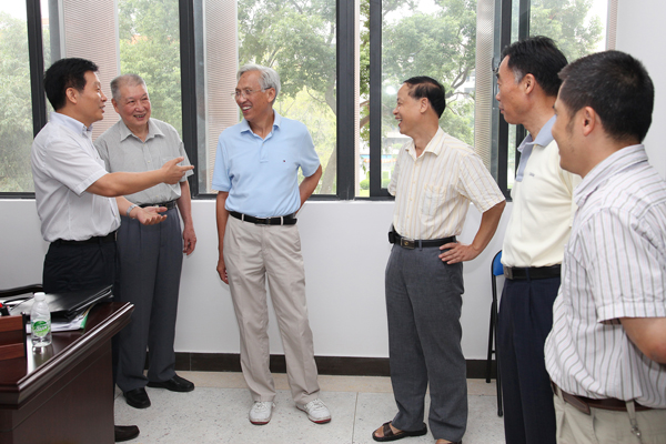 9月9日,教师节前夕,东莞理工学院老领导张遐龄、包树元在学院领导安少华等的陪同下,参观了新落成的图书信息中心大楼。