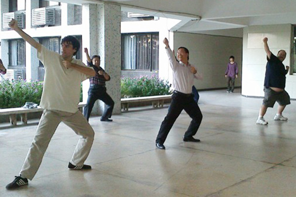 Andrew和Robert参加广播体操训练