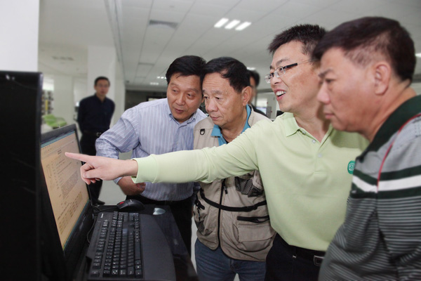 图书馆馆长陈伟向杨顾问一行介绍了图书馆一站式服务、大开放管理模式、各楼层的功能与布局、数字化图书馆建设、社会化服务等基本情况。杨顾问频频点头表示赞赏,并饶有兴致地在图书检索电脑前操作起来,查找喜欢的图书目录。杨顾问接着来到图书馆广场,观看园林小品和绿化带,边看边称赞学院“绿化工作做得很好,很有学府氛围”。