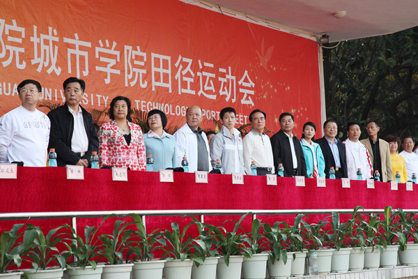 市人大常委会副主任冯同恩,东莞理工学院城市学院第二届董事会名誉董事长、东莞理工学院党委书记周致纳,城市学院第二届董事会董事长、广东鸿发投资集团有限公司总裁麦照容,东莞理工学院校长杨晓西,东莞理工学院党委副书记、纪委书记黄碧莲,东莞理工学院副校长、城市学院院长安少华,东莞市体育局局长邹联,学院党政领导及教学系部、院机关处室主要负责人出席了开幕式并在主席台就座。2000年悉尼奥运会10米台跳水双人冠军李娜,1999年天津体操世锦赛团体和吊环双料冠军董震也受邀参加了开幕式。
