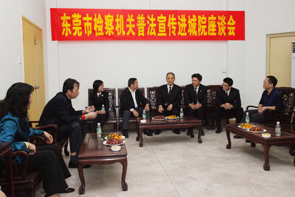 11月28日,东莞市人民检察院来我院开展“普法宣传进校园”座谈会。东莞市预防职务犯罪工作领导小组办公室主任、市人民检察院职务犯罪预防科科长郭普训,市预防办副主任、市检察院预防科主任科员周志强,市检察院预防科副科长钟维国等一行6人,院督学陈丁堂教授,思政部主任何鹏举教授和部分教师参加了座谈。