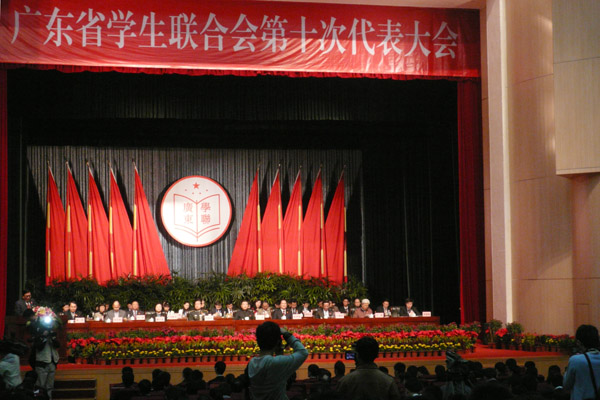 12月21日-23日,主题为“广东再出发?我们第一棒”的广东省学生联合会第十次代表大会在广州军区礼堂隆重举行。中共中央政治局委员、广东省委书记汪洋,省委副书记、纪委书记朱明国,广州军区副政委刘良凯,团中央书记处书记卢雍政,副省长雷于蓝,省人大常委会原副主任方苞等出席会议或做重要讲话。我院团委副书记罗文芳老师、院学生会主席黄江涛参加了会议。