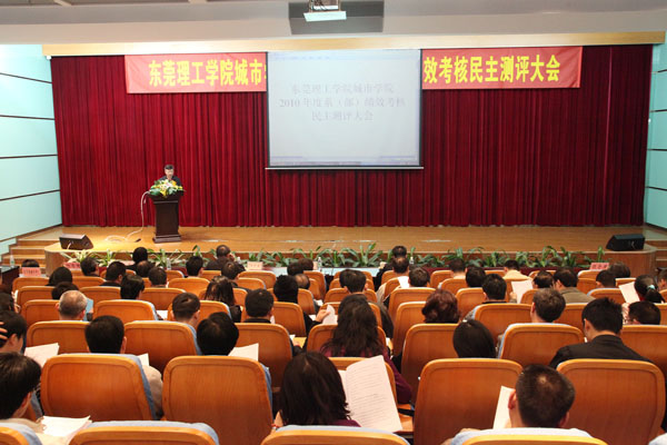 根据我院2010年度绩效考核工作的安排,12月23日下午,东莞理工学院城市学院教学系(部)及其中层正职领导绩效考核民主测评会在学术报告厅隆重召开。