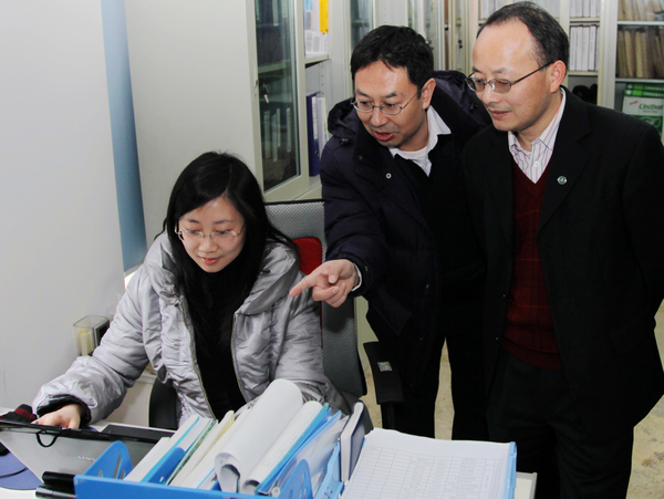 学术副院长、院迎评促建领导小组副组长、迎评促建办公室主任程发良教授在计算机与信息科学系检查迎评工作