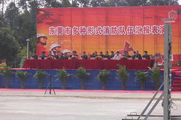 省公安厅副厅长郑东,省消防总队队长雷盛武,东莞市政府副市长成洪波等领导出席并观看了表演。