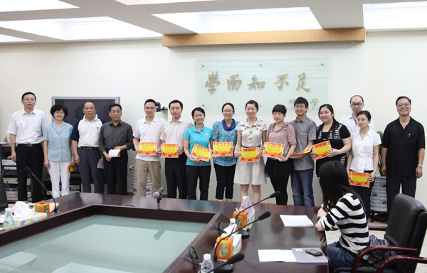 会议对龙卫洋等10位“2010年我院最受媒体欢迎的教师”、刘红艳等18位“优秀教师通讯员”及廖金英等13位“优秀学生通讯员”进行了表彰,并为2010年廉政短文短语获奖者进行了颁奖。陈东汉老师和大学生记者团团长廖金英同学分别代表获奖老师和学生在会上发言。