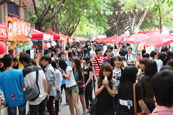 与往年的摊位名号相比,今年的店面招牌更是新颖夺目,“非尝不渴”、“糖心风暴”、“食得好”等店名既好听又创新,当然客源滚滚而来。最具特色的还属效仿日本风的“女仆咖啡屋”,几个女生身穿女佣连衣裙,模样既可爱又甜美,那些喜欢日式“萌女”的男顾客们又怎能挡住她们的魅力?当然是个个都掏钱喝咖啡、看美女去。