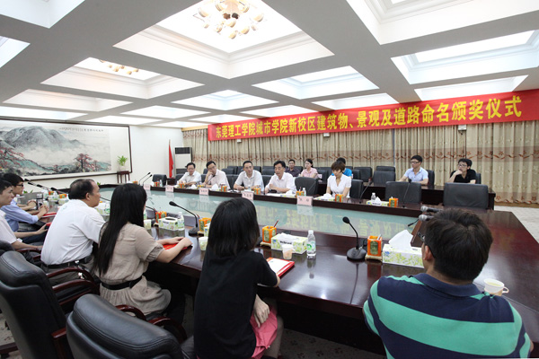 5月11日,城市学院新校区建筑物、景观及道路命名获奖作品颁奖仪式在4号楼315会议室举行。党委书记朱志德、城市学院新校区筹建办主任杨敏林、学院办公室主任王玉、党委宣传部部长何鹏举等领导参加了会议。