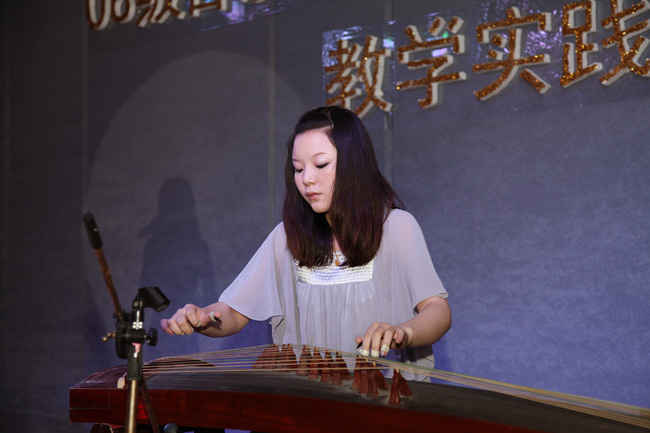 08音乐表演专业的学生们轮番上台,通过声乐、器乐等形式展示了3年来的教学成果。演出在李伟健同学演唱的《祖国,慈祥的母亲》雄厚的歌声中拉开帷幕。台上同学们放声高歌,台下观众掌声此起彼伏,观众时而被《红旗颂》、《乡音乡情》中优美的歌声深深打动,时而跟随着吉他弹唱《别来无恙》的欢快昂扬曲调欢呼鼓掌,时而为古筝伴奏《人生何处不相逢》优雅的曲调而叫好,时而为《肖邦圆舞曲》、《歌剧2》展示出来的西方风情而陶醉。全班同学以大合唱《青春舞曲》圆满结束了本次汇报演出。