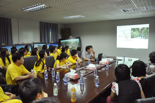 新校区筹建办领导热情接待了到访的老师和同学们。在筹建办会议室,工程部宋云龙老师向大家演示讲解了新校区建设效果图,并通报了目前的建设情况,详细说明了新校区大门所处的地理位置、周边建筑、空间关系,为同学们提供了翔实的材料。随后,合约工程部经理陈俊凯就目前已有的部分设计方案,做了一些分析,就现代与传统两种设计风格分别向大家做了展示和讲解。