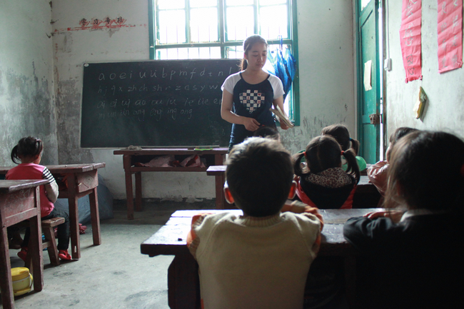 “岩坎小学只有一名在校教师,其余的都是支教的志愿者。”
